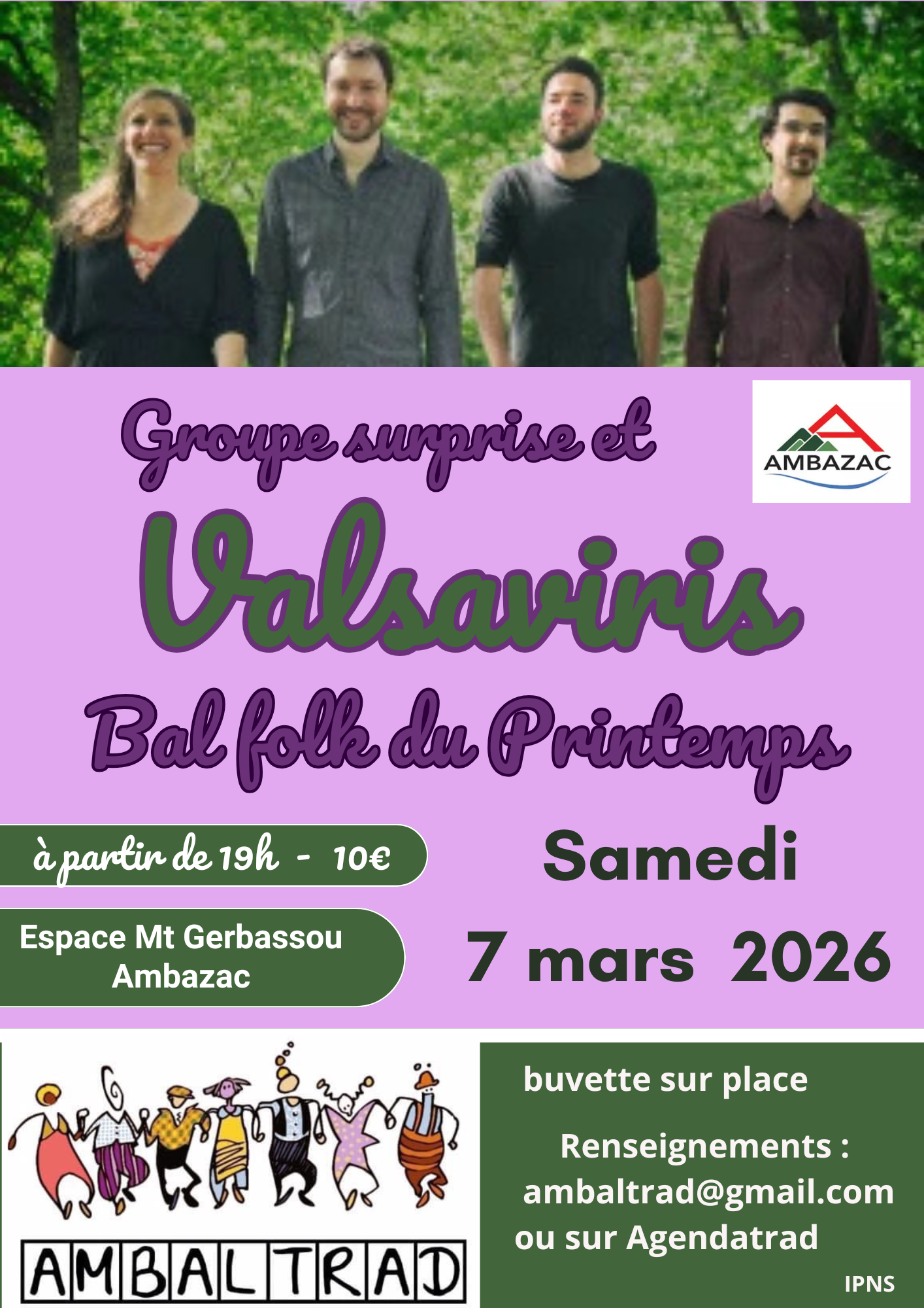 Bal animé par un groupe surpise à partir de 19H puis par le groupe Valsaviris à 20h30.